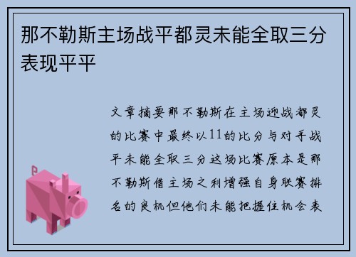 文章摘要:那不勒斯在主场迎战都灵的比赛中,最终以1-1的比分与对手战平,未能全取三分。这场比赛原本是那不勒斯借主场之利增强自身联赛排名的良机,但他们未能把握住机会,表现较为平淡。这一场平局引发了不少球...